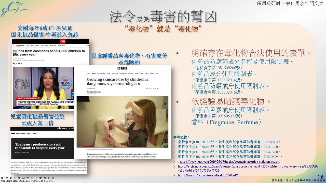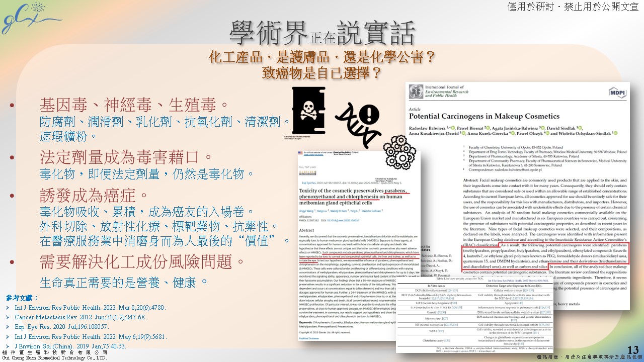 基因毒、神經毒、生殖毒、內分泌干擾物與潛在致癌物等風險成份。