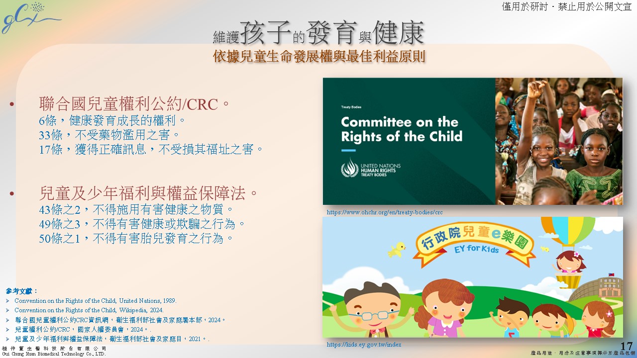 產前的使用、蓄積,即影響胚胎發育,直/間接造成早產、體重過輕、